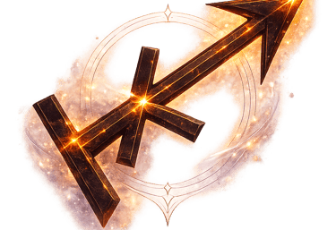 He appears as a purple archer formed from flame and intention, his bow drawn with impossible precision. Born of Jupiter, he is adorned in tin and turquoise, symbols of expansion, force, and the clarity of a focused strike.