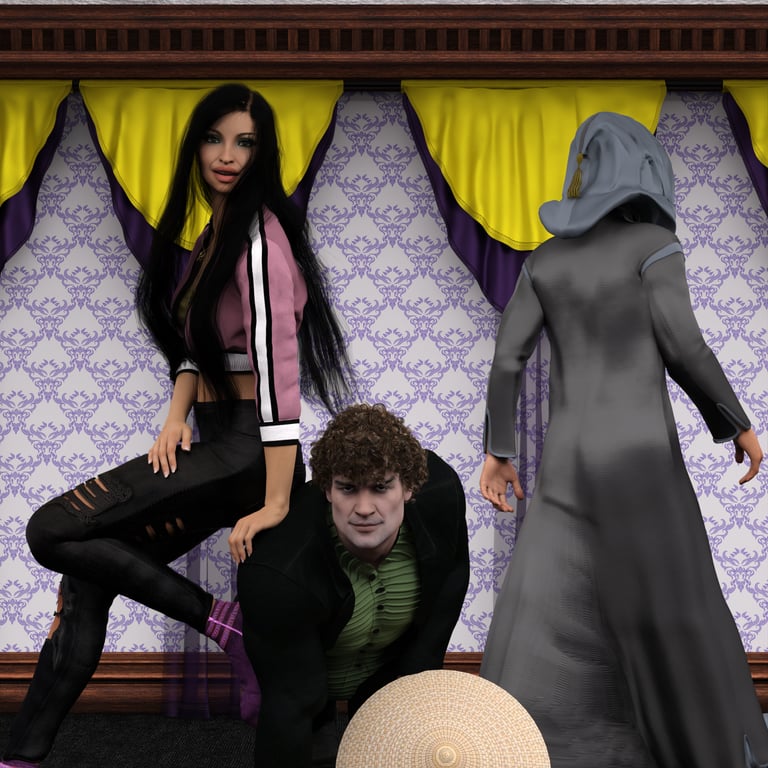 Cauda despises Que with theatrical passion and adores Eve with equal intensity. After their parents died in office, she and Capat stepped into their roles, reshaping the departments they inherited with brilliance and volatility.