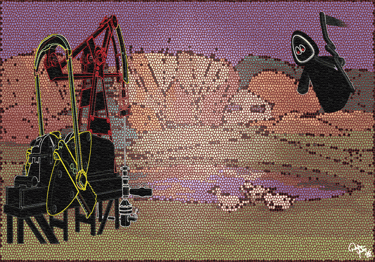His art tends to have Hip-Hop or graffiti elements but he is remarkably well-rounded as a creator. He also deals with prophecies, occult, political, and spiritual subjects, all with a dark spin.